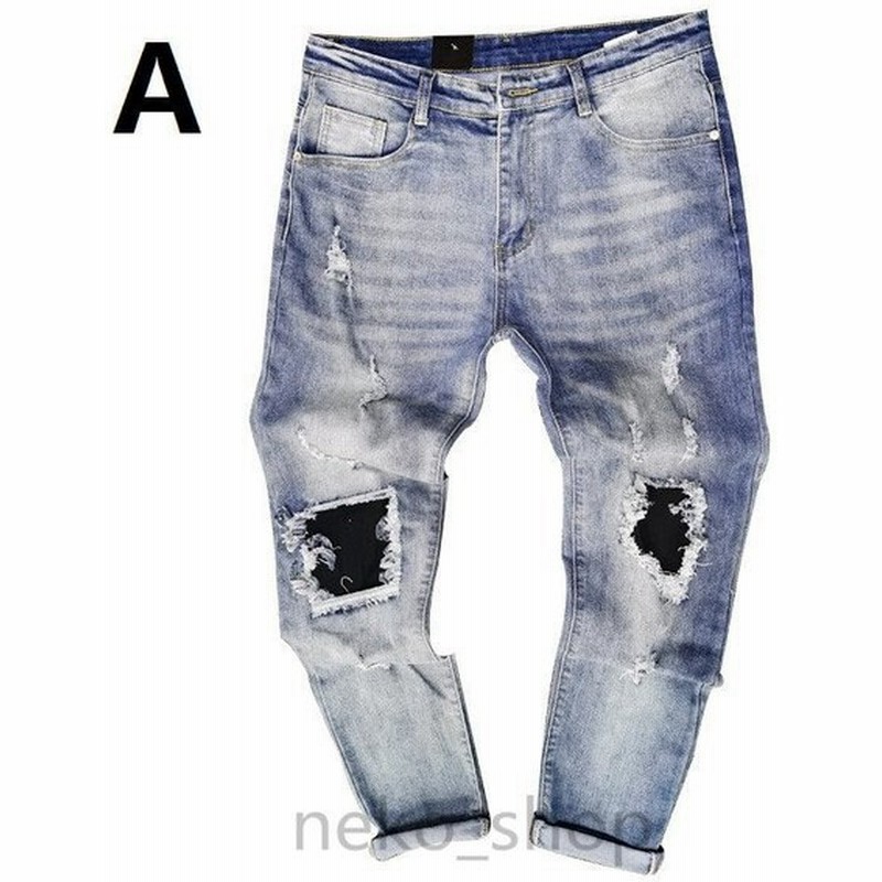 ダメージ欧米風メンズデニムパンツジーンズボトムスワイドルックgパンロングパンツストレートカッコイイプスリム男性用カジュアル 通販 Lineポイント最大get Lineショッピング
